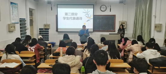 活动伊始,团支书带领大家学习了党的十九大中有关生态文明建设的重要讲话精神。随后,由学生代表诵读有关生态文明的诗歌,朗诵内容将生态文明与传统文化紧密结合,同学们沉浸其中,现场气氛一度达到活动高潮。紧接着,团支书组织大家进行了关于“保护生态文明,建设美丽校园”的宣誓活动,同学们积极响应,并在宣誓结束后签字承诺为保护校园环境贡献自己的一份力量,表现出了大家的决心。最后,由团支书做活动总结,并为大家提出了一些切实可行的环境保护方案,同学们大有收获。