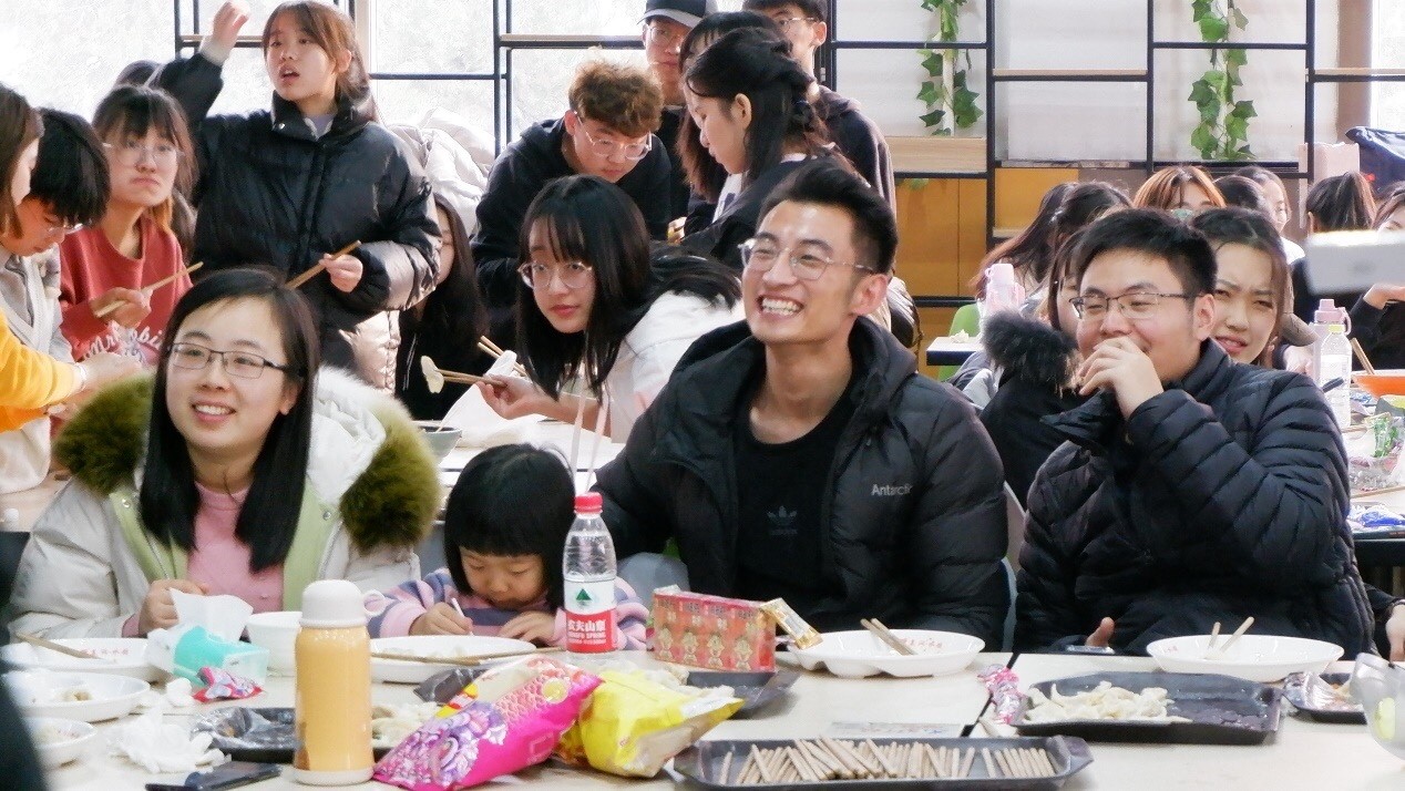 活动伊始,主持人向大家详细介绍了此次活动的流程。在包饺子过程中,大家热情高涨,参与度高。有的同学和面、有的同学拌馅,有的同学擀皮,同学们各自发挥特长,分工明确又相互协作,每个人的脸上都洋溢着笑容,将欢乐和幸福包进水饺,将交流和友谊融进水饺,离乡的清愁在这温馨的氛围中烟消云散。一阵忙碌过后,一只只形态各异、紧实饱满的饺子便摆满了桌子,大家的幸福感和满足感也油然而生。最后,在大家的齐心协力下,热腾腾的饺子终于出锅。为活跃现场气氛,整场活动穿插了许多精彩的娱乐项目。在走秀环节中,主席团和部长们一改往日的严肃,展现了诙谐幽默的一面。在节目表演环节中,歌曲串烧、民族舞蹈、旧曲新唱,一连串的表演为大家呈现了一场精彩的视觉盛宴,大家围坐在一起享受此刻的欢乐与幸福,活动在一片欢声笑语中圆满结束。
