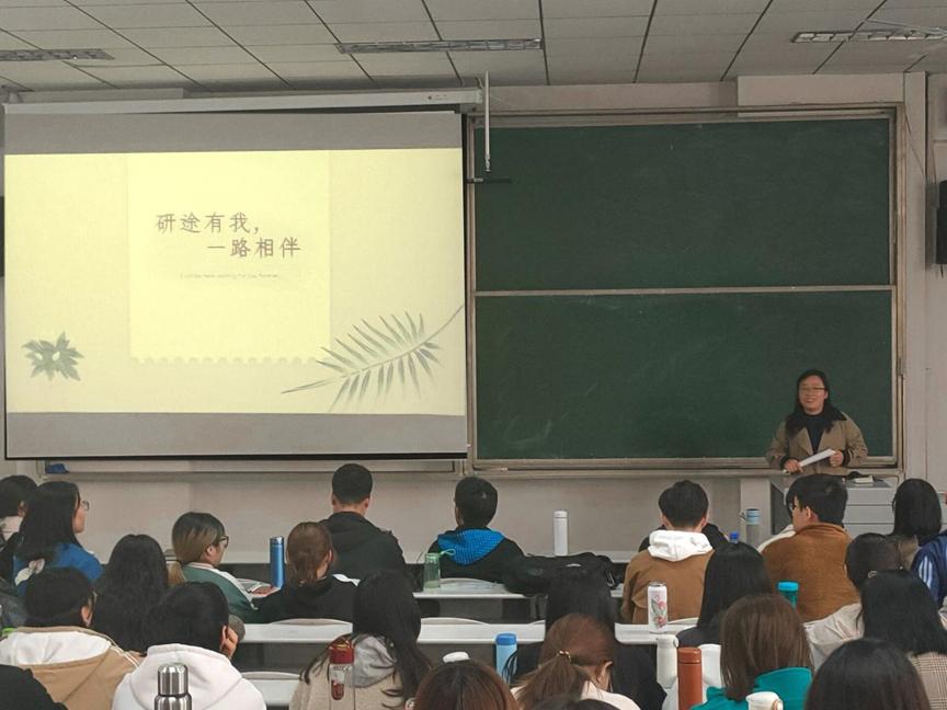 讲座共分为两个部分。第一部分,刘老师从考研录取分数线、考研全流程、考研重要时间点等几个方面入手,详细介绍了考研的诸多事项,通过详实的数据和历年积累的丰富经验,为同学们提供了宝贵的择校意见。第二部分,刘老师围绕考研调剂、学硕与专硕的区别如何收集考研信息等为同学们做出了详细解答,指导同学们做好考研信息准备。最后,刘老师就制定复习计划、时间管理、心态调整等方面提出相关建议,指导考研学生学会时间管理,提高学习效率。讲座结束后,现场师生又进行了一对一的交流。
