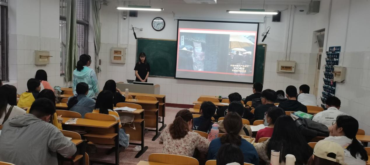 活动伊始,主持人向大家介绍了宣讲活动的流程。随后,袁玉莹以ppt和视频为载体带领同学们重温了中国共产党所走过的光辉历程,讲述了那段峥嵘岁月里发生的感人故事,并呼吁大家,作为新时代青年,既要学史明理更要学史力行。宣讲结束后,大家纷纷表示,革命先烈们播下了中国革命的火种,开启了中国共产党的伟大航程,作为青年学生要努力学习百年党史,发扬红色传统,传承红色基因,将“小我”融入“大我”,把青春献给祖国,成长为一个对社会有用的人才。