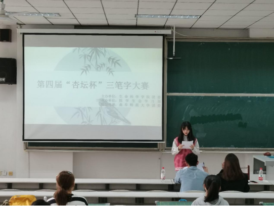 于综合楼201教室举办第四届“杏坛杯”三笔字大赛,本次活动面向2019级和2020级全体学生,2019级辅导员赵连栋老师,2020级辅导员袁晓涵老师担任评委老师。