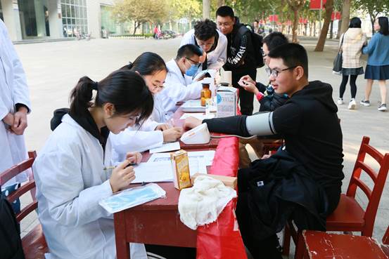 团委学生会于10月19日到20日在大学生活动中心和西公寓前广场举办了“量血压,测血型”活动,广大师生和附近居民都积极参与。