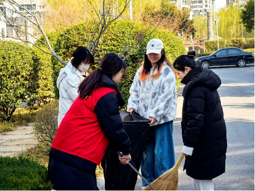 清晨8点,身着统一红色马甲的大学生志愿者在社区广场集结。活动负责人手持分工图,将队伍划分为“路面清扫”“绿化带攻坚”“设施清洁”三个小组,各组配备扫帚、垃圾钳、簸箕、垃圾袋等工具,在主干道旁,“路面清扫组”的成员挥动扫帚,将落叶、纸屑和烟头逐一归拢装袋;绿化带深处,“攻坚小队”俯身钻进灌木丛,用长钳夹出塑料袋、饮料瓶等陈年垃圾,甚至徒手清理卡在树枝间的杂物。与此同时,“设施清洁组”的同学们用抹布蘸取肥皂水,仔细擦拭宣传栏、健身器材和休闲长椅,连边角缝隙也不遗漏。有人弯腰清扫路面落叶,有人钻进绿化带拾捡隐蔽垃圾,还有人合力搬运堆积的废弃杂物。学生们干劲十足,分工明确,效率极高,汗流浃背的身影成为社区最亮眼的风景线。在团队默契配合下,原本散落垃圾的街道变得整洁如新,绿化带重现青翠本色,公共设施在阳光下熠熠生辉。