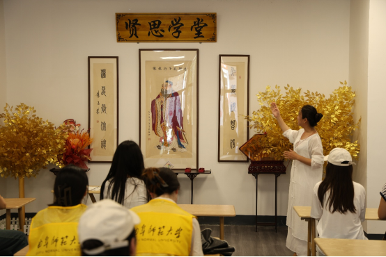 师生一行参观了石门山大学生创客基地的大学生创新创业中心、文创体验中心、艺术交流中心、非遗工坊、实训室等功能区域。在萱草淑院,师生们参观了萱草文化长廊,聆听了创始人韩涵老师的讲解,韩老师以《大学》“格物致知”为切入点,结合生命科学专业特色,从《本草纲目》看传统生命观与现代科学融合,深入浅出地阐释了传统生命观与现代科学的融合路径,为同学们带来了一场跨越古今的专业与文化对话,引发对专业学习与文化传承的深刻思考。在贤思学堂传习所,师生们体验“非遗相承”的文化仪轨,进一步深化了对中华优秀传统文化 "创造性转化、创新性发展"的理解。