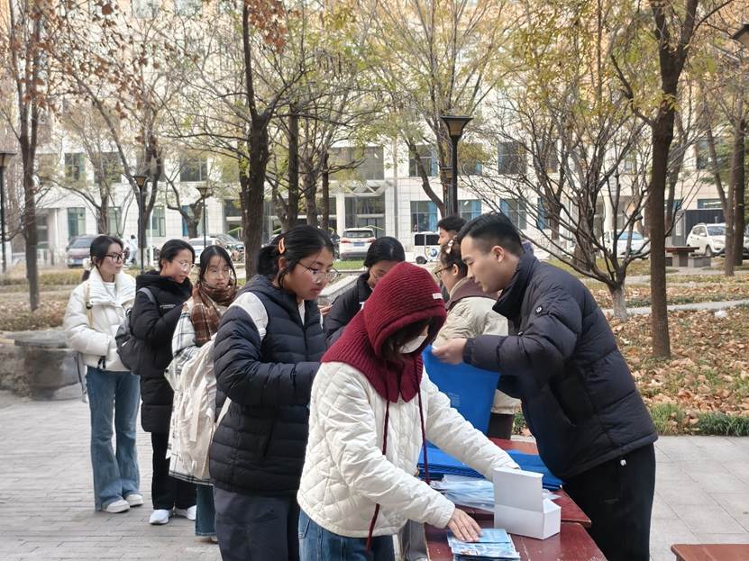 联合粉笔教育在校园后花园共同举办“我为同学做实事”暖心物资发放活动,面向全院学生免费发放文具、暖宝宝等实用物品。