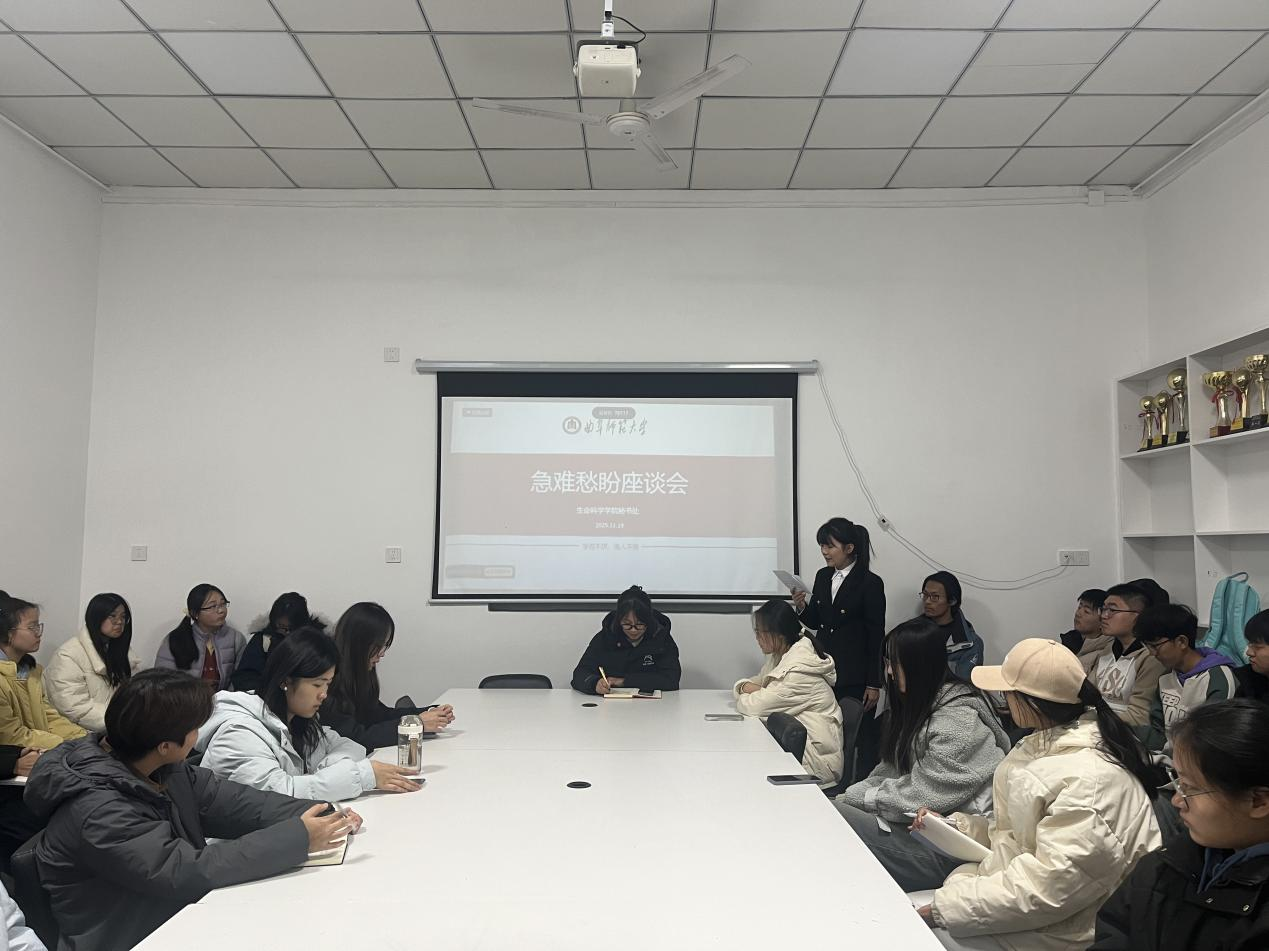 于生物楼330教室成功举办“急难愁盼座谈会”。院学生会主席团成员及各年级学生代表共同参与本次活动。