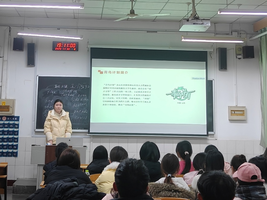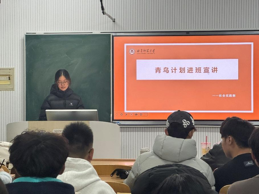 团委社会实践部在生物楼各班教室顺利开展“青鸟计划”专题宣讲活动。