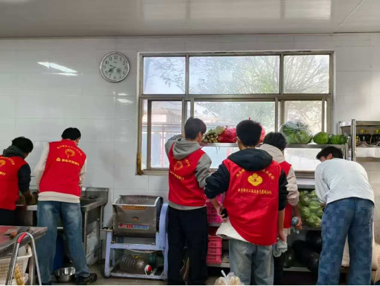 2025级生物科学(师范)一班团支部走进齐李村幸福食堂,以精细化服务助力乡村助老食堂日常运营,用青春行动践行助老担当。