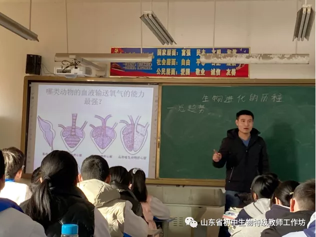 大家共同听取了兖州八中生物教师许洪举展示的八年级生物学公开课———生命的进化。课后,大家进行了深入的交流与研讨。许洪举向听课的各位老师介绍了本堂课的设计思路及个人教学反思。燕艳老师对本节课进行了点评。她说,许老师在教学中坚持以学生中心,教学过程以启发式教学思想为指导,设计了环环相扣的“问题串”,在解决一个个串联问题的活动中,学生自主生成了本节课的知识体系,主动构建了生物进化的总体趋势。本节课教学中结合内容特点,开展了“感悟生命、珍惜生命、热爱生命、不负青春”的情感教育,可有效促进学生形成正确的生命观念。