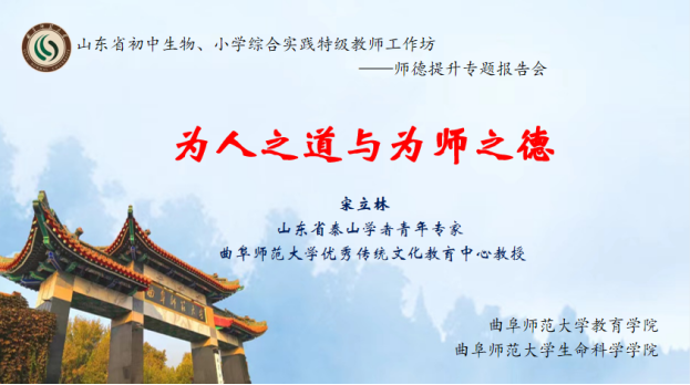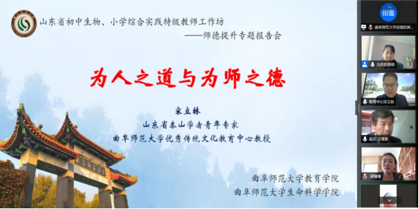 为贯彻习总书记加强师德师风建设的指导思想,进一步提升工作坊各成员的师德水平,2022年3月27日,山东省初中生物、小学综合实践特级教师工作坊联合举办“师德提升”专题报告会。会议邀请山东省泰山学者青年专家、捷克论坛