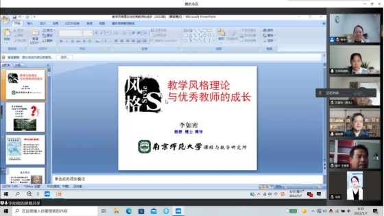 李教授从如何成长为具有鲜明教学风格的优秀教师的问题展开本次会议,将本次会议报告分为教学风格的本质与特点、类型、与学生发展的关系、形成过程及方法五个方面。并且重点强调:在成为优秀教师的过程中,要找到最适合自己道路、方式,找回教育的“真”与“诚”,认识到自己独特教学风格的形成在教学过程中所具有的不可替代的价值。