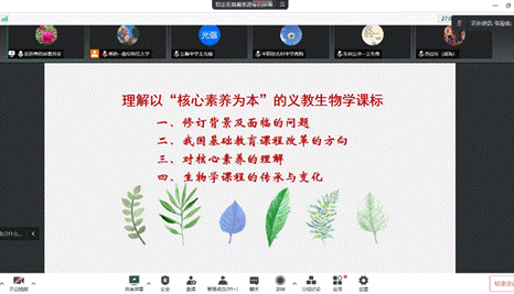 张迎春教授作题为《理解以“核心素养为本”的义教生物学课标》的线上报告。山东省高中、初中生物特级教师工作坊全体成员及捷克论坛