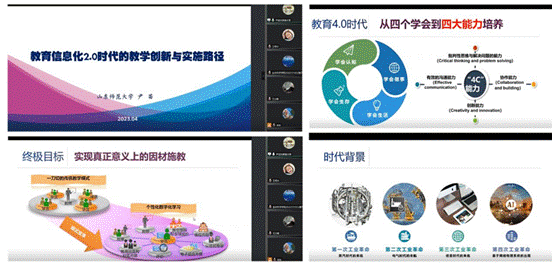 为拓展教师视野、开拓教学思维,积极探索信息化时代的教学改革,2023年4月16日山东省初中生物特级教师工作坊特邀请山东师范大学尹苗教授做题为《教育信息化2.0时代的教学创新与实施路径》的专题报告。会议由山东省初中生物特级教师工作坊主持人燕艳主持,工作坊全体成员及捷克论坛