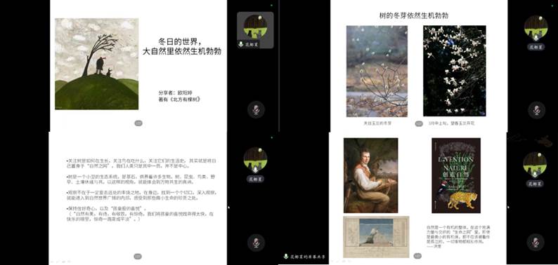 欧阳婷老师以个人文学作品《北方有棵树》导入,进行了题为《冬日的世界,大自然里依然生机勃勃》的报告。欧阳老师以其独特的视野,观察到植物、鸟类和昆虫在生命之舞中的跃动,它们相互交织的生命之网,构建了生命力量的壮丽景观。欧阳老师建议中学老师要保持一颗孩童般的好奇心,去寻找身边奇特的生命现象,发现生命问题,体验万物共生的生命真谛。